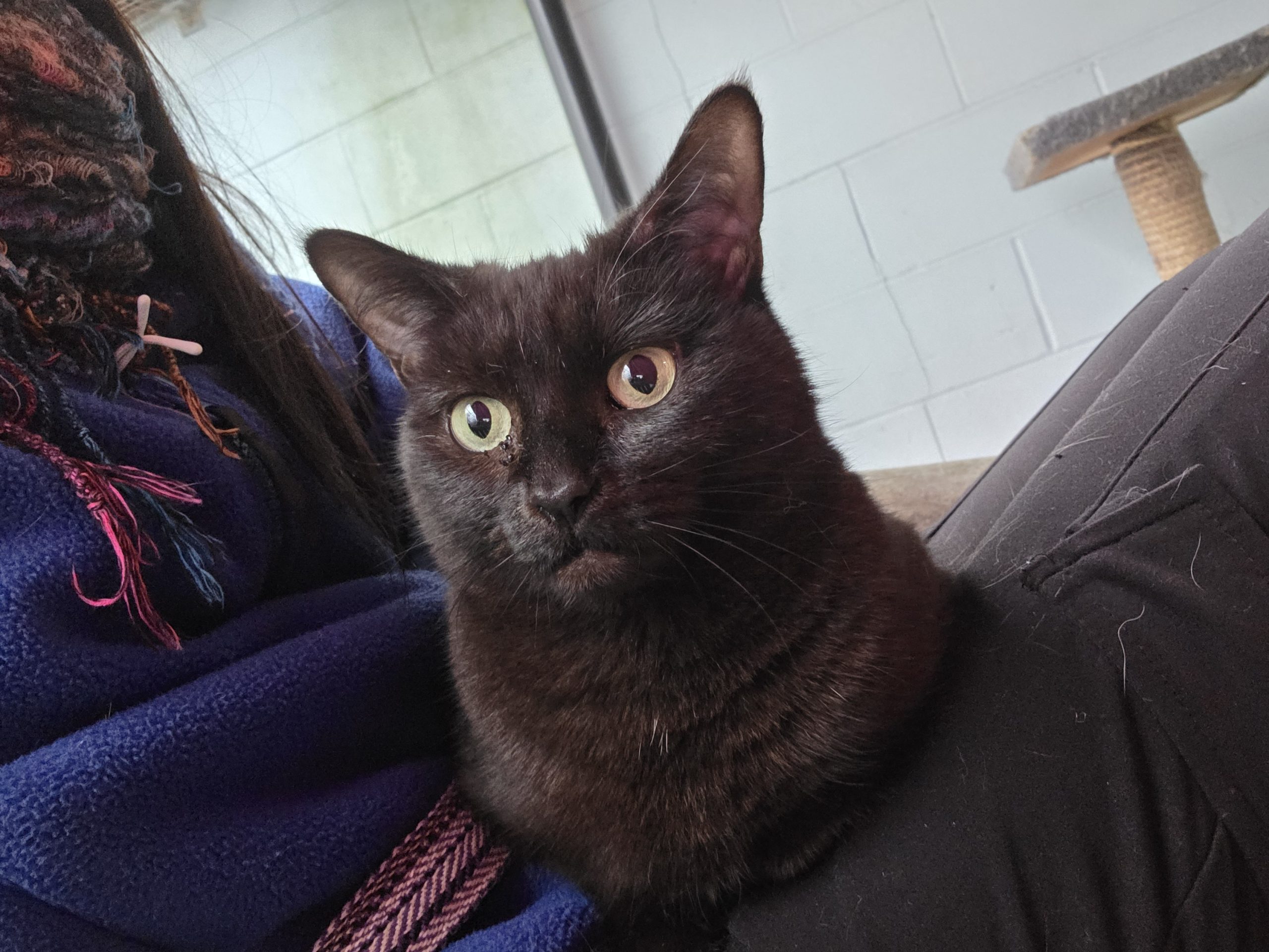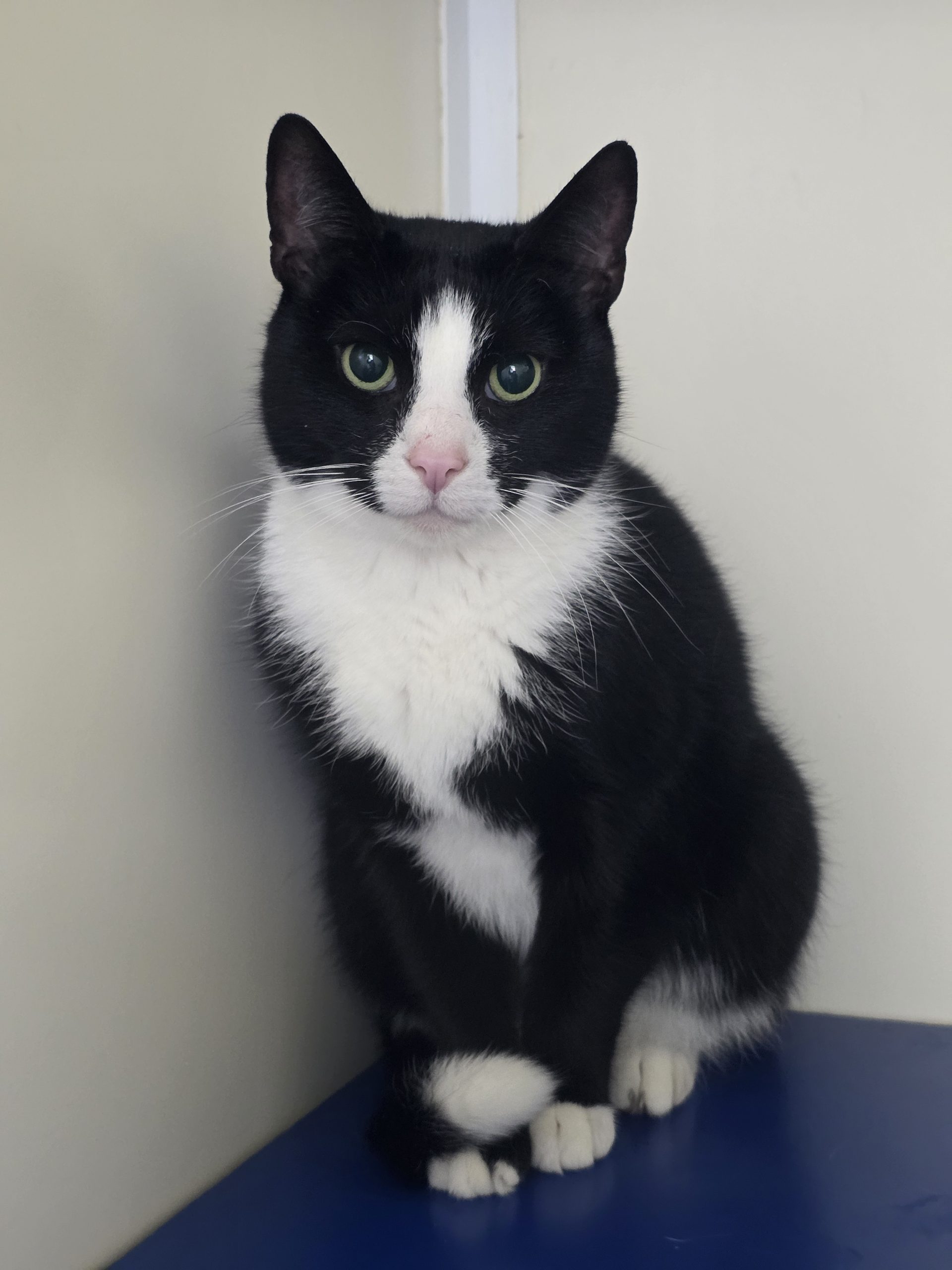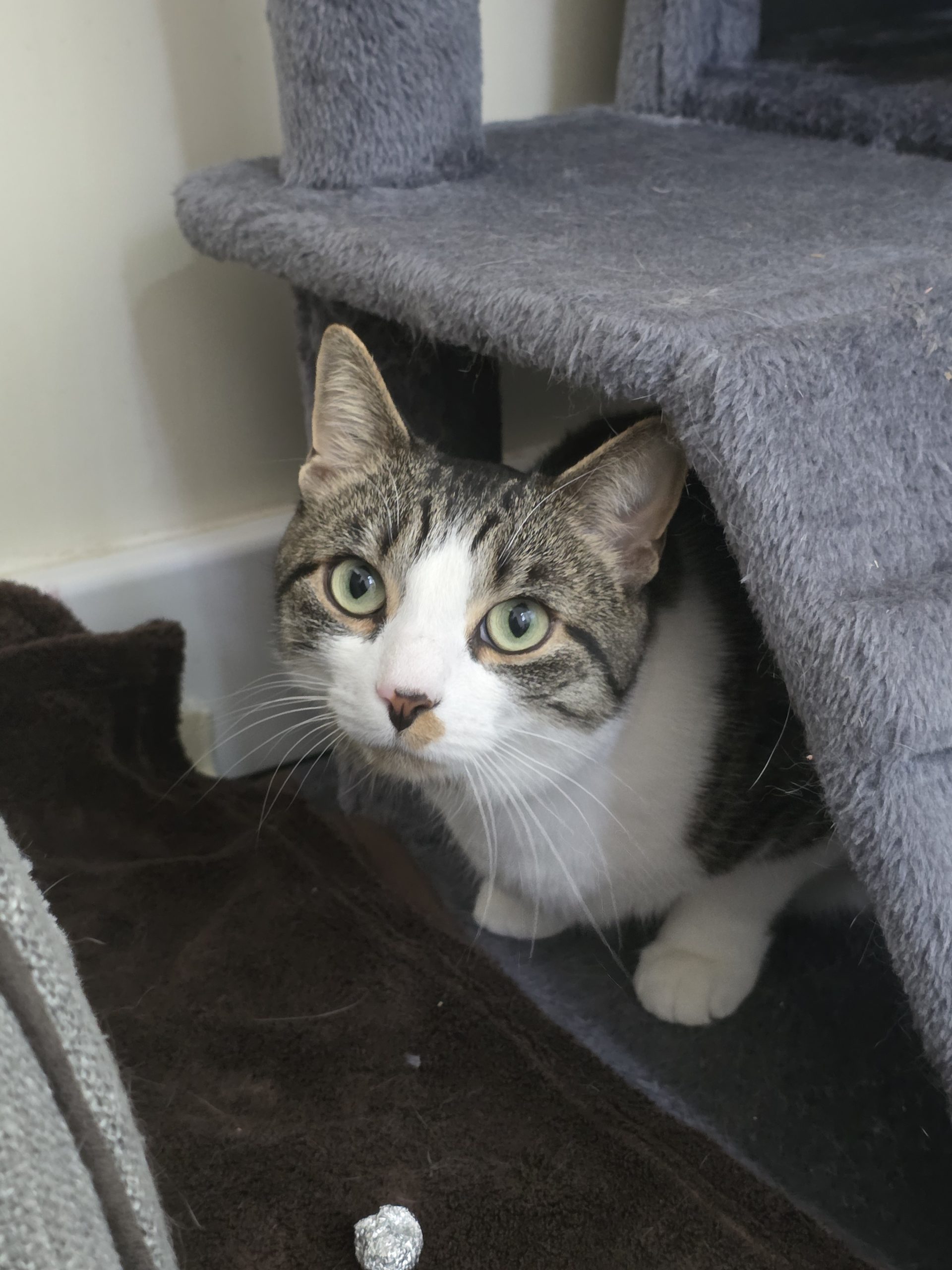 About me: Belle came to us with kittens and was a wonderful mum to them. She is very gentle and is more than happy to simply be in the same room as you and watch as you go by your day, but also loves a good cuddle and head scratch.