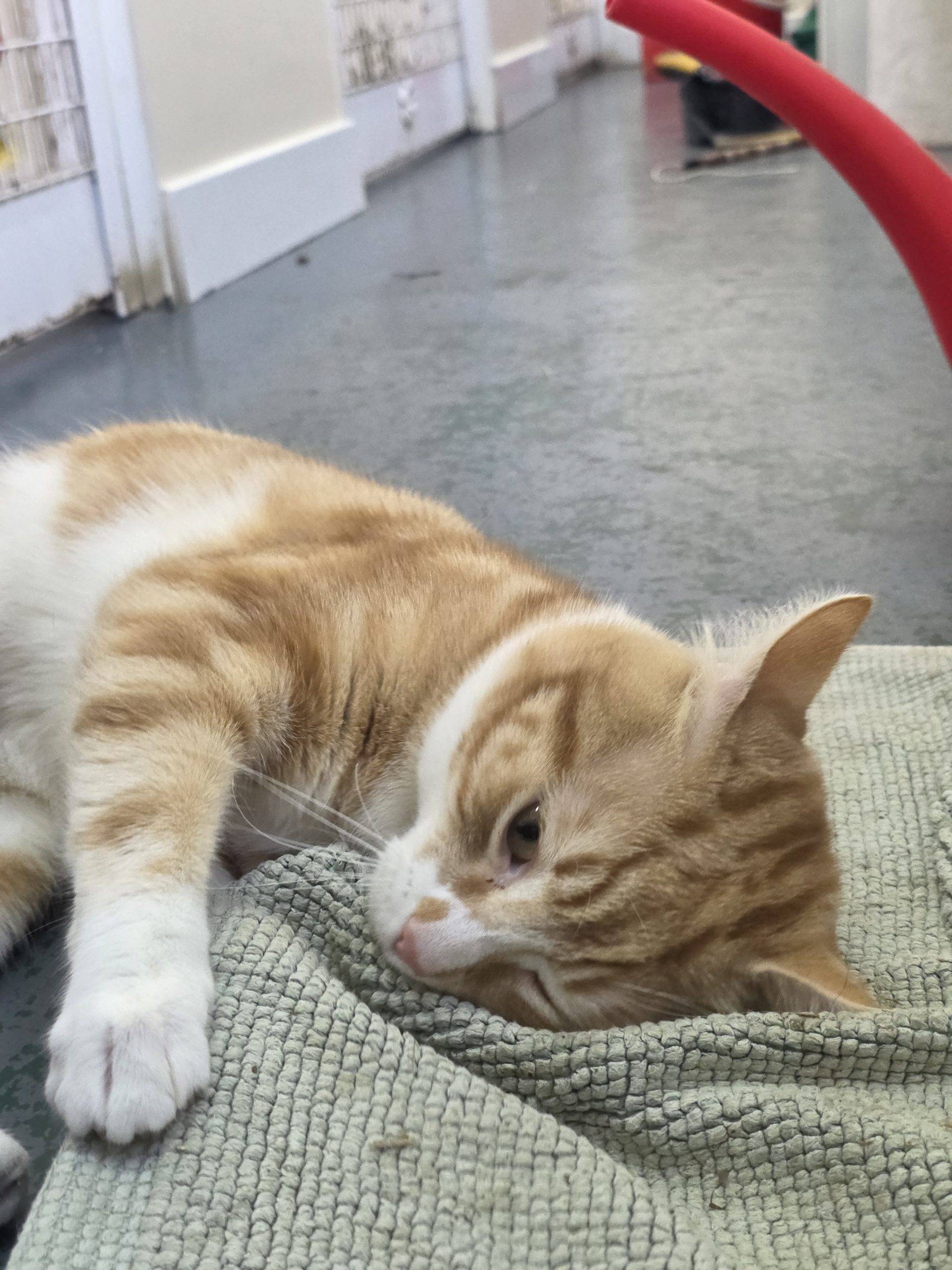 About me: Ginger Simba is nervous in new environments and can get overstimulated but once he feels safe he is inquisitive, affectionate and a little bit cheeky. He loves catnip and exploring his surroundings.